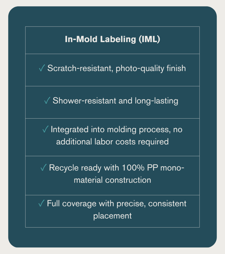 Switching from PS labels to in-mold labeling isn’t just an aesthetic choice. It’s a strategic one. It tells your customer that every part of your product has been thoughtfully considered, crafted with care, and built to reflect the same quality and values they expect from your brand.